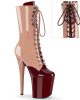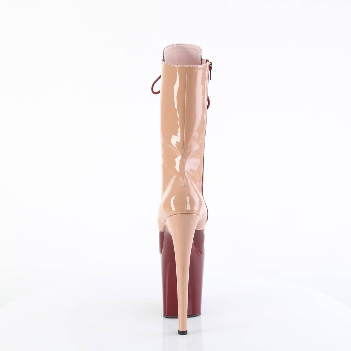 The Pleaser FLAMINGO-1054DC Two Tone Lace-Up Mid Calf Boot is available in a wide range of sizes (UK 2-9) and varied colours including Pink, Burgundy, Nude, Brown, and Black. Available colour combinations include Pink & Burgundy, Pink & Nude, Black & Brown, and Nude & Brown.