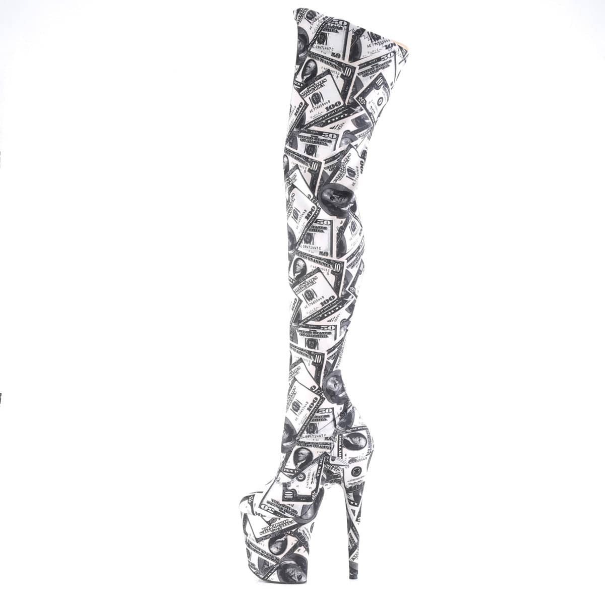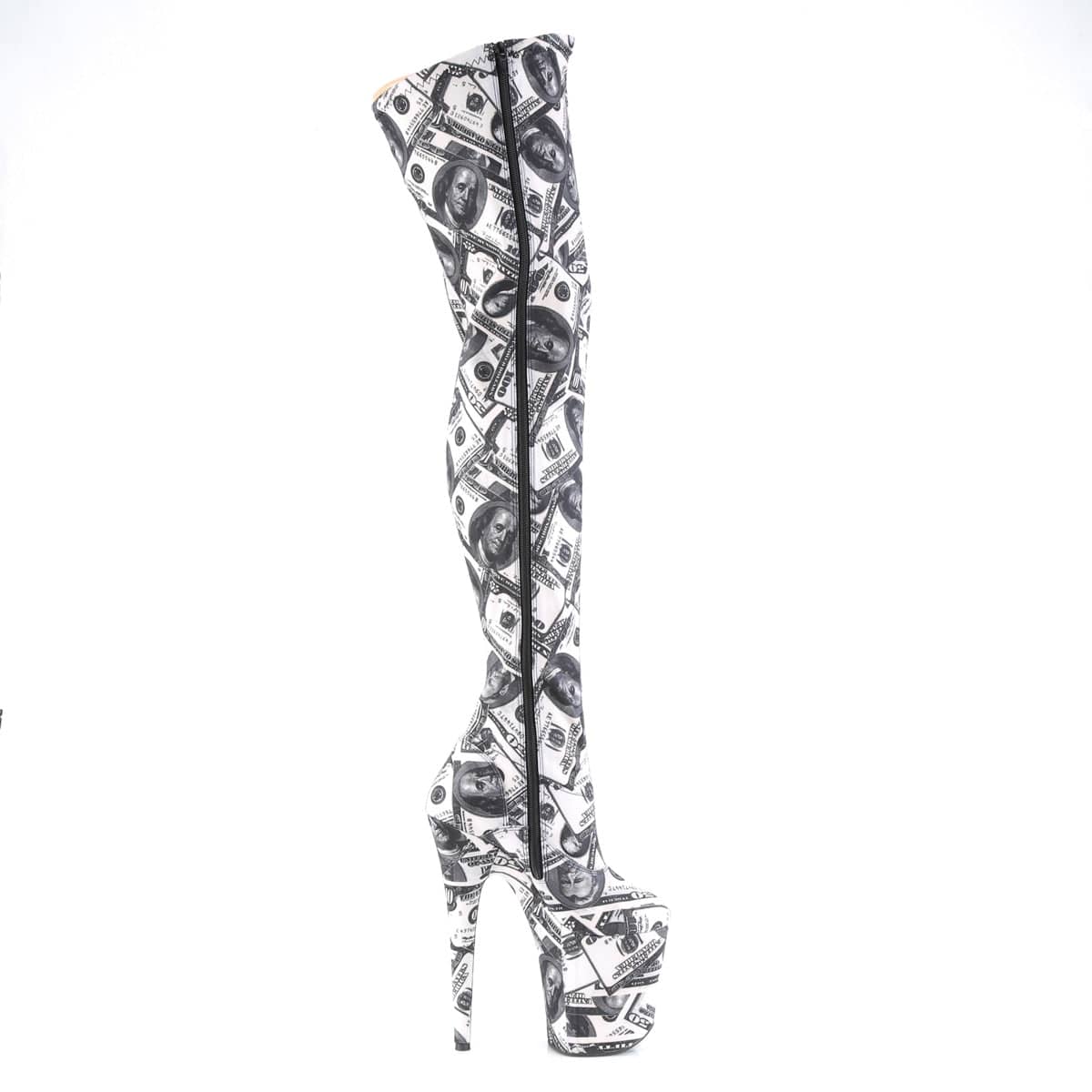 Introducing FLAMINGO-3000DP, the ultimate in sexy and flirty stretch thigh high boots! With an 8″ heel and 4″ platform, you’ll be towering over the competition. The stretchy material molds perfectly to your legs, ensuring a snug and comfortable fit. This vegan stretch thigh high boot comes in both black and white, so you can choose the perfect color to match your mood. Get ready to turn heads in FLAMINGO-3000DP!