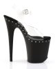 Get ready to turn heads with our FLAMINGO-808ABLS Vegan Sexy Shoes. These 8″” (20.3cm) Stiletto Heel, 4″” (10.2cm) Platform Ankle Strap Sandals are the perfect addition to your wardrobe. The AB Lined Rhinestones on the Platform adds a touch of glamour that is sure to make you stand out. Available in Clear and Black, get ready to show off your flirty side.