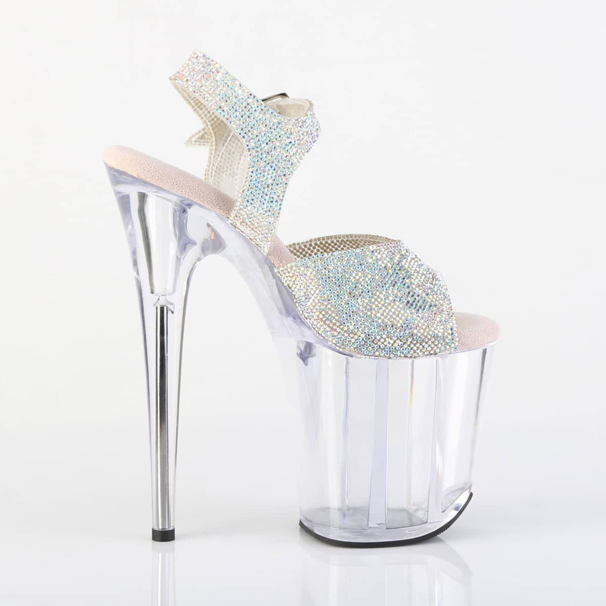 Step into glamour and strut your stuff with the FLAMINGO-808N-RS, a brilliantly crafted 8″ Heel, 4″ PF RS Embellished Ankle Strap Sandal by the renowned brand, Pleaser. Known for our expertise in fun, daring and adventurous footwear, the FLAMINGO-808N-RS is next-level fabulous!
