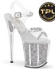 These stunning platform shoes feature an impressive 8″ heel and a 4″ platform, giving you an astonishing lift that will make you the center of attention. Their ankle strap with dazzling stones adds an extra touch of glam to your look.