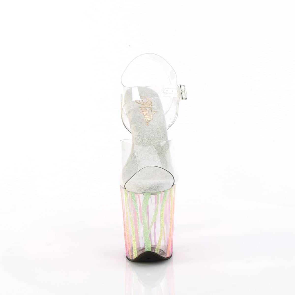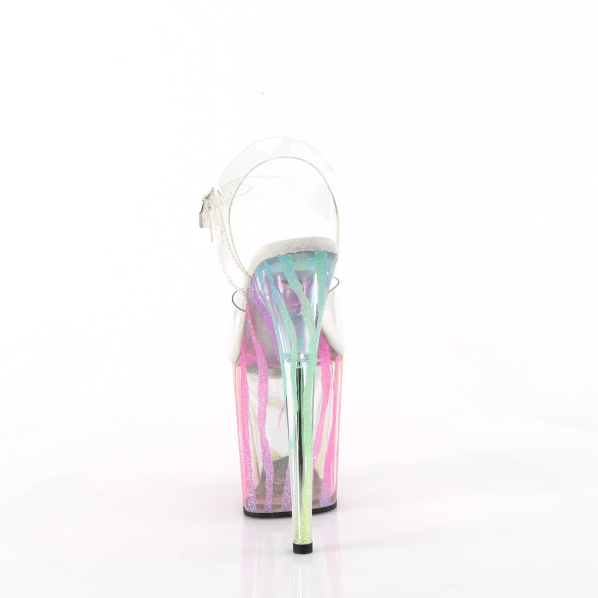 Strut your stuff in our sexy Flamingo-808RG-03 vegan shoes! The clear design and rainbow glitter detailing will have heads turning all night long. Perfect for a flirty night out or adding some spice to your everyday look. Get ready to turn up the heat in these sexy shoes!