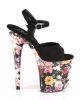Flower AND Power. These Flamingo sandals are business on the top and peony on the bottom. Black faux suede coats the peep toe and ankle straps, while a vintage flower print wraps around the 4” platforms and 8” heels for a fresh and blossoming look. Fit for the farmer’s market or the pole, everyone will want to stop and admire the roses when you walk by!