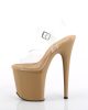 The only thing better than toffee is VEGAN toffee! Straight from Pleaser’s Flamingo range, are these 8” tall platform sandals. Made with only vegan materials and a soft inner sole, these heels are shinier than freshly heated toffee with their light-brown 4” coated platforms. Plus, with built-in clear ankle straps, you can wear these sandals to run to the candy shop or dance class!