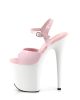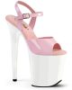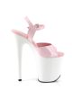 This Flamingo is more than just pink. From the Flamingo range, these Pleaser sandals tower on top of glossy white 8” heels and 4” platforms. With soft pink soles and pink patent peep toes and ankle straps, you’ll be the finest of the flock. Slip them on for a two-tone look that combines the softness of pink with the purity of white!