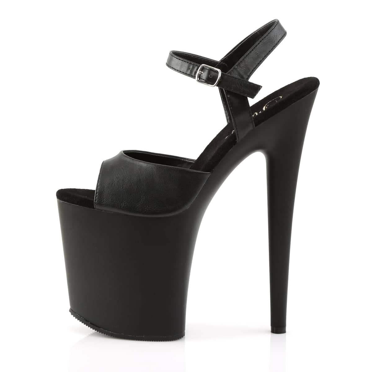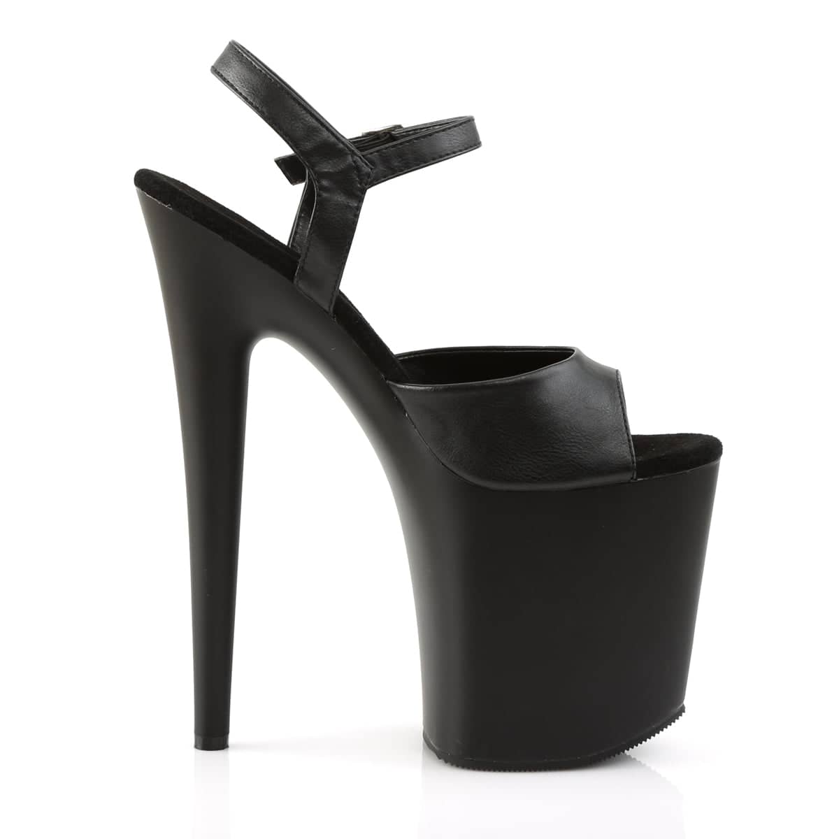 We like it like matte. These Flamingo Pleasers are made of durable faux leather on the top and a smooth black matte on the bottom. The black leather peep toes and ankle straps help with pole gripping, while the matte 8” stiletto heels and 4” platforms give these sandals a classy vibe for walking or dancing. Try on a pair of these for the stage or the sidewalk!