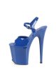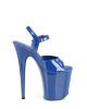 Blue, but more blue. Step into these Pleaser Flamingo sandals to feel you, but more you on top of glistening blue 8” heels and 4” platforms. With patent ankle straps and peep toes leaping out of the blue soles, these heels are perfect for spinning, climbing, and clacking. Use them for a shapeshifting inspired cosplay or to serve up blue paint drummer realness!
