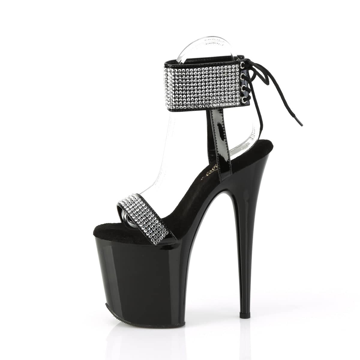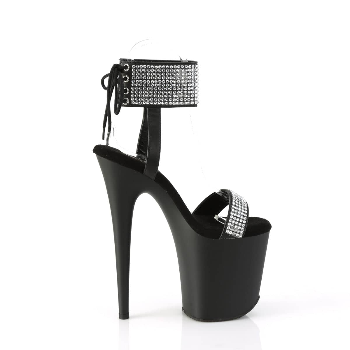 Flaunt your sexy side with FLAMINGO-870! These vegan Black Sandals with Rhinestone Embellished Ankle Cuff & Toe Strap are the perfect mix of flirty and seductive. Experience comfort with 8″ Heel & 4″ PF Back Tie Ankle Cuff. Get ready to turn heads and make a statement with these Sexy Shoes.