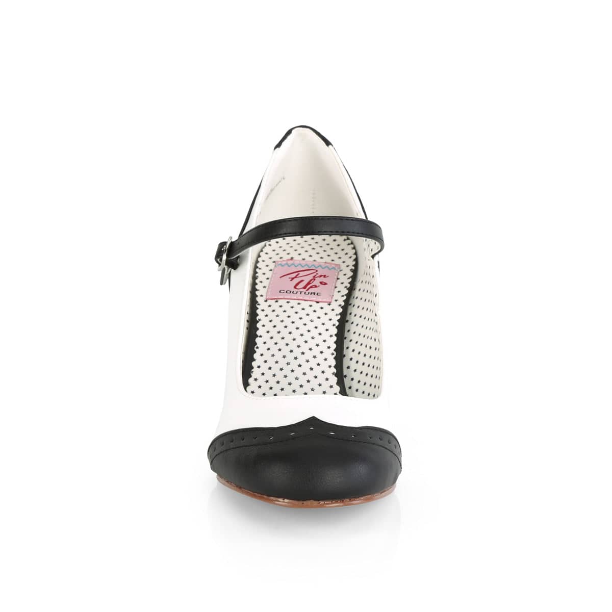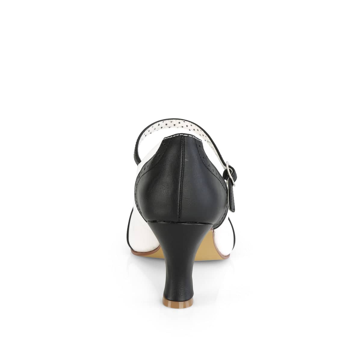 Get ready to strut your stuff in these Black and White PU FLAPPER-25 Maryjanes! With a 3″ kitten heel and flirty perforation details, these sexy shoes are perfect for any occasion. Plus, they’re vegan-friendly! Add these round-toe spectator pumps to your collection today.