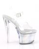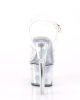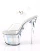 Step into the spotlight with FLASHDANCE-708CH sexy vegan sandals! Featuring a 7″ heel and 2 3/4″ PF LED illuminated ankle strap, these clear, multi-coloured, and silver hologram shoes will make you shine all night long. Perfect for the flirty fashionista who loves to make a statement! #SexyShoes #Vegan
