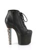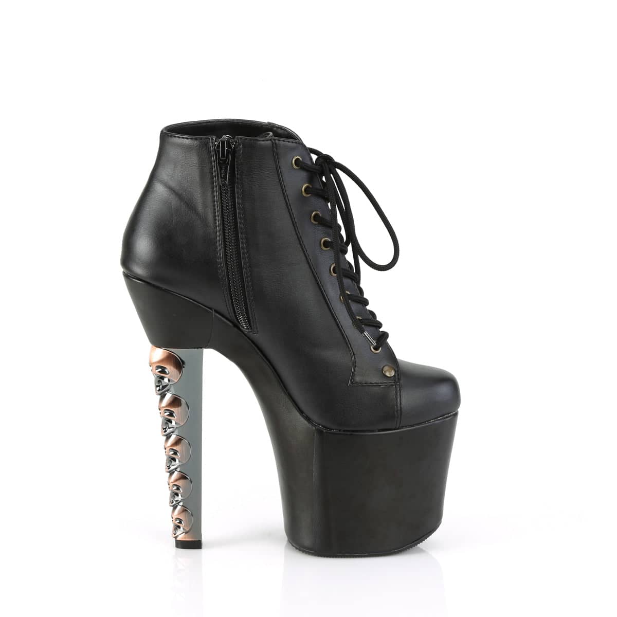 Step out in style with our HEX-1005 Sexy Vegan Ankle Booties in Black Faux Leather. These flirty boots feature a 7″ Skull Stacked Heel and 3 1/4″ PF Lace-Up Front that’s sure to turn heads. Perfect for any occasion, these vegan boots are cruelty-free and fashion-forward. Get ready to take your look to the next level with these sexy shoes!