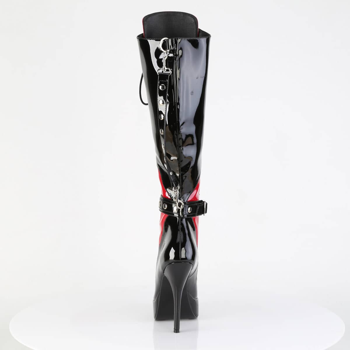 Our Indulge-2028 boot is not just a high heel. The patent material gives these boots an exceptional shine, while the lace-up design adds a striking visual contrast. Offered in two bold colourways, red and black, this boot is sure to make a statement.