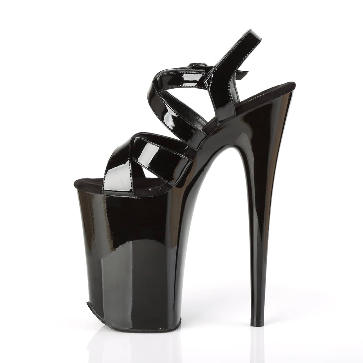 Unleash your inner goddess with our Black Infinity-997 double criss-cross ankle strap sandals! The 9″ (229mm) heel and 5 1/4″ (133mm) platform will have you oozing confidence and sex appeal. And the best part? These sexy shoes are 100% vegan! Perfect for any occasion that requires a touch of flirtation and edge.