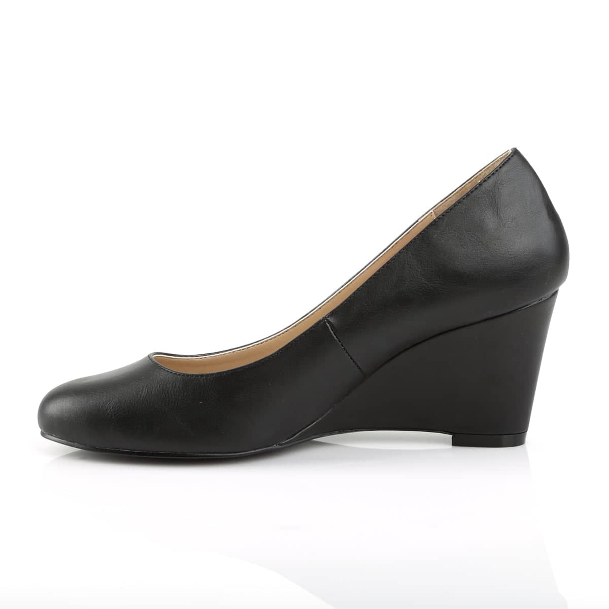 Be bold and turn heads in the Black Faux Leather KIMBERLY-08 Vegan Wedge Classic Pump! With a sexy 3″ (7.6cm) wedge, these shoes will elevate any outfit. Made with vegan materials, you’ll feel good about rocking these flirty pumps. Get ready to slay! Style Code: KIMBERLY-08.