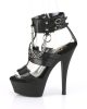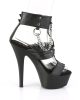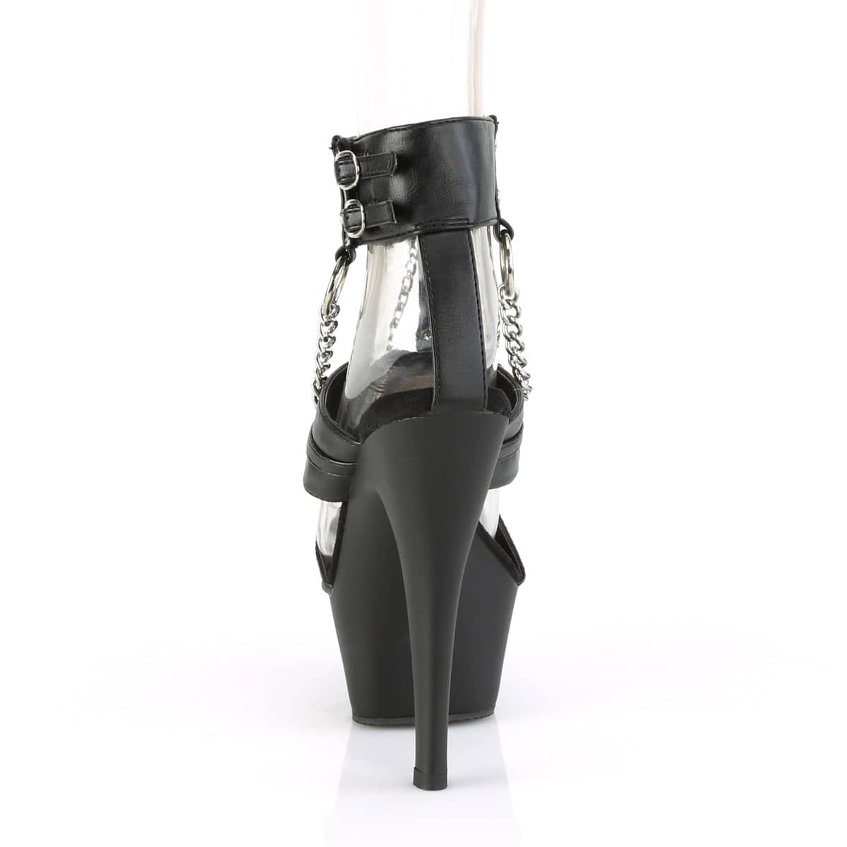 Time to make a chain-ge. If you’re looking for something new but still familiar, then look no further than these matte Kiss sandals! They’re shaped in a common curve from the 6” heels to the 1 ¾” platforms, but deviate from the norm with faux leather straps and metal scraps. Connected to the ankle with T-straps and metal chains, these black heels will drive your audience insane!
