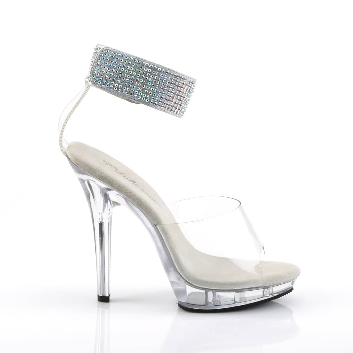 Step up your shoe game with our Clr/Clr LIP-142 Vegan Rhinestone Sandals! With a 5″” (12.7cm) heel and a flirty 3/4″” (1.9cm) platform, these sexy shoes will keep you on-trend and on your feet all night long. The fully-covered wide ankle band is adorned with sparkling rhinestones, ensuring you’ll be the center of attention. These clear beauties are perfect for any occasion! (Style Code: LIP-142)