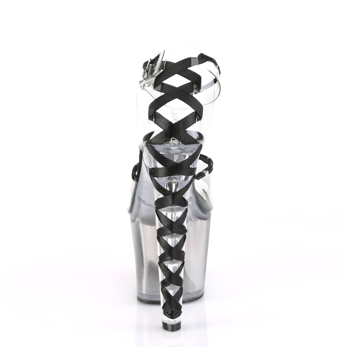 Step into the spotlight with our LOVESICK-712T Vegan Ankle Strap d’Orsay Sandals. Featuring a 7″ heel and 3 1/4″ platform, these sexy shoes are perfect for a night out. The clear and black colorway adds a flirty touch to any outfit. Made with vegan materials.