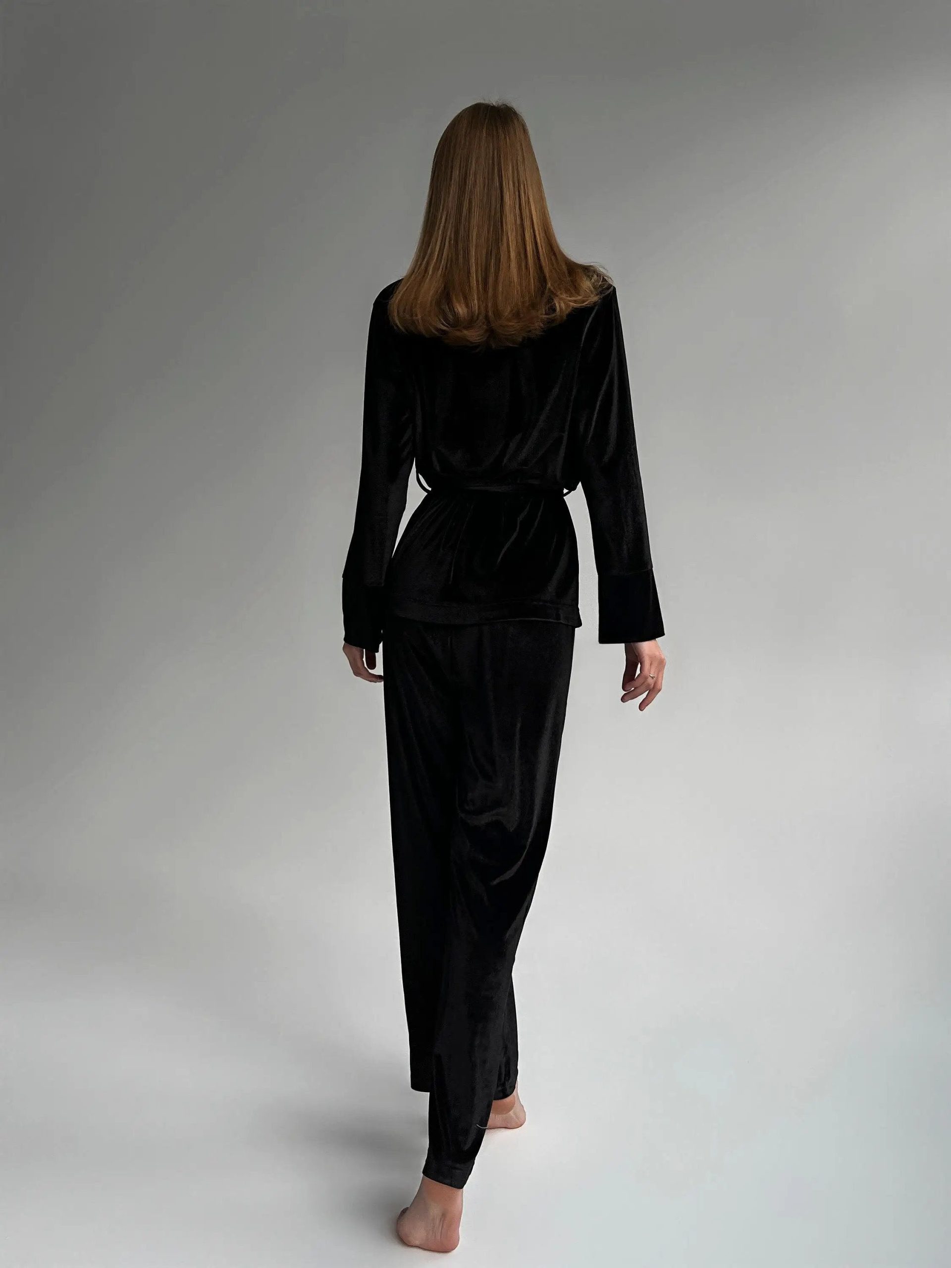 Channel your inner royal in this sumptuous bridal Robe in black. The elegant flowy long sleeves of the kimono will make you feel like a goddess! It doesn’t get much more luxurious – or bridal – than that. Celebrate your wedding day or any other day with this getting-ready dressing gown that’ll always remind you of your special day.