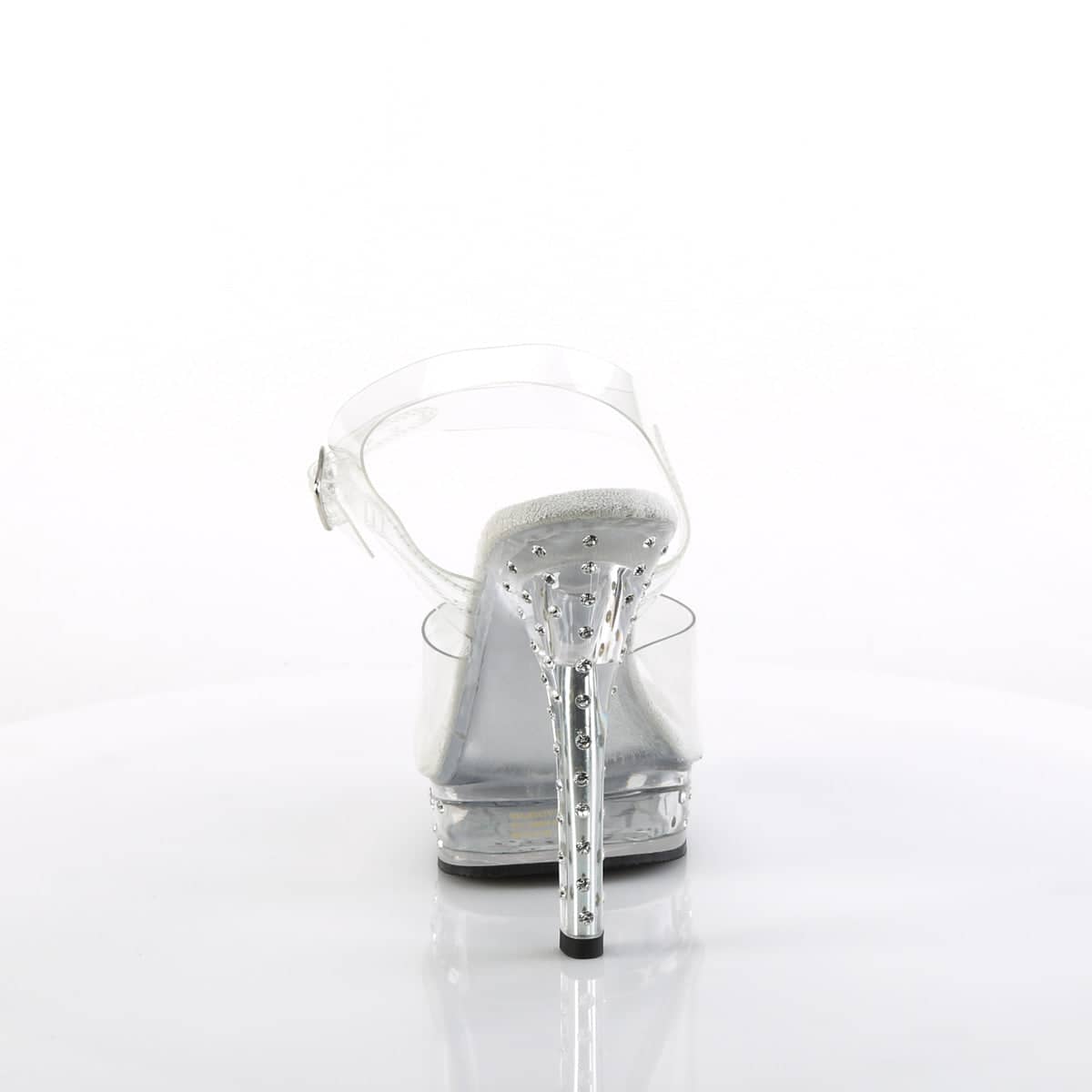 Get ready to turn heads in the MAJESTY-508SDT Clear Ankle Strap Sandal! With a towering 5″ heel and flirty 7/8″ platform, these sexy shoes are vegan-friendly and perfect for any occasion. Make a statement with your footwear and strut your stuff in these stunning sandals.