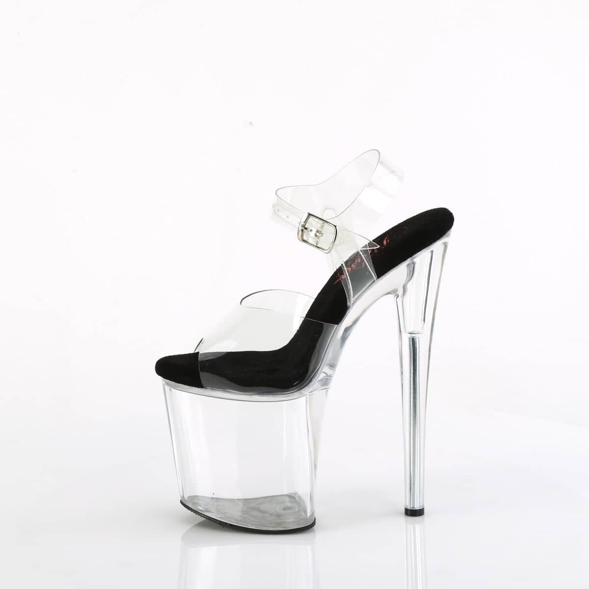 Step up your shoe game with our NAUGHTY-808 Vegan Sandals. These 8″ heels and 4″ platform beauties will have heads turning. Featuring a comfortable width ankle strap and a sleek combination of clear and black, these Sexy Shoes are a must-have for any fashionista. Don’t compromise your ethics for fashion – these are 100% vegan!