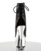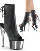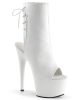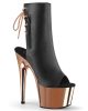 Adore 1018 Faux Leather Peep Toe Ankle Boots by Pleaser Shoes. Available in Black and Silver, Black and Rose Gold, Black Patent Matte Black, and White.