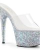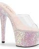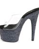 Adore 701LG Glitter Platform Mules Open Toe by Pleaser Shoes available in black, off white/pink and silver.