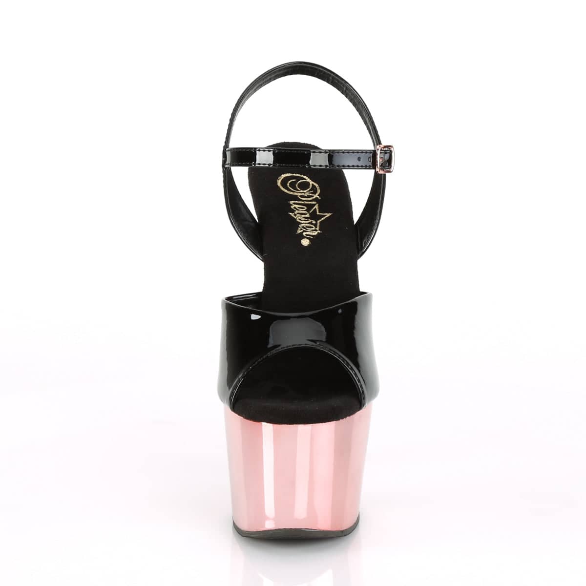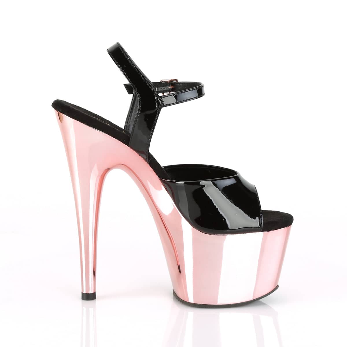 Adore 709 Black & Rose Gold Open Toe High Heels by Pleaser Shoes