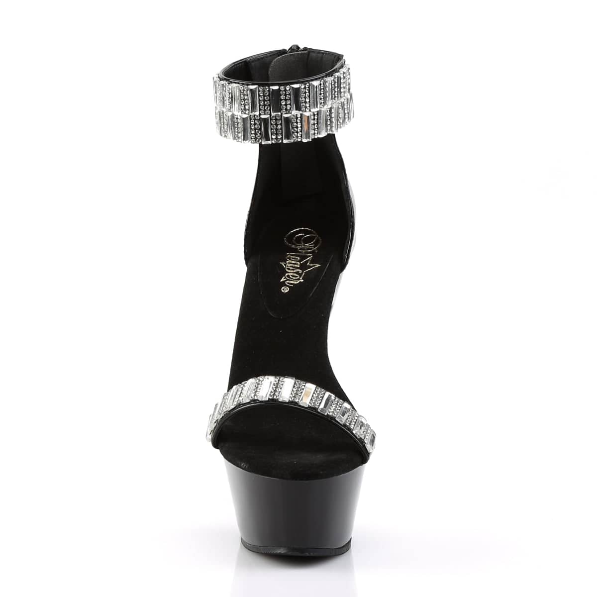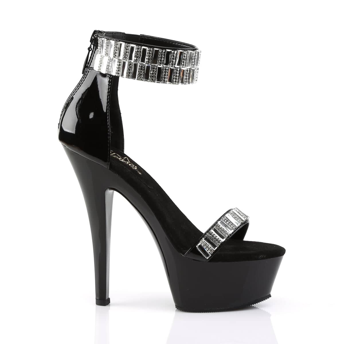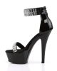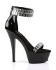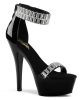 Absolutely stunning black 6 inch platform heels with ankle and toe straps covered in sparkling rhinestones. These black rhinestone platform sandals are perfect for formal evening wear and would complete any outfit!Â