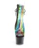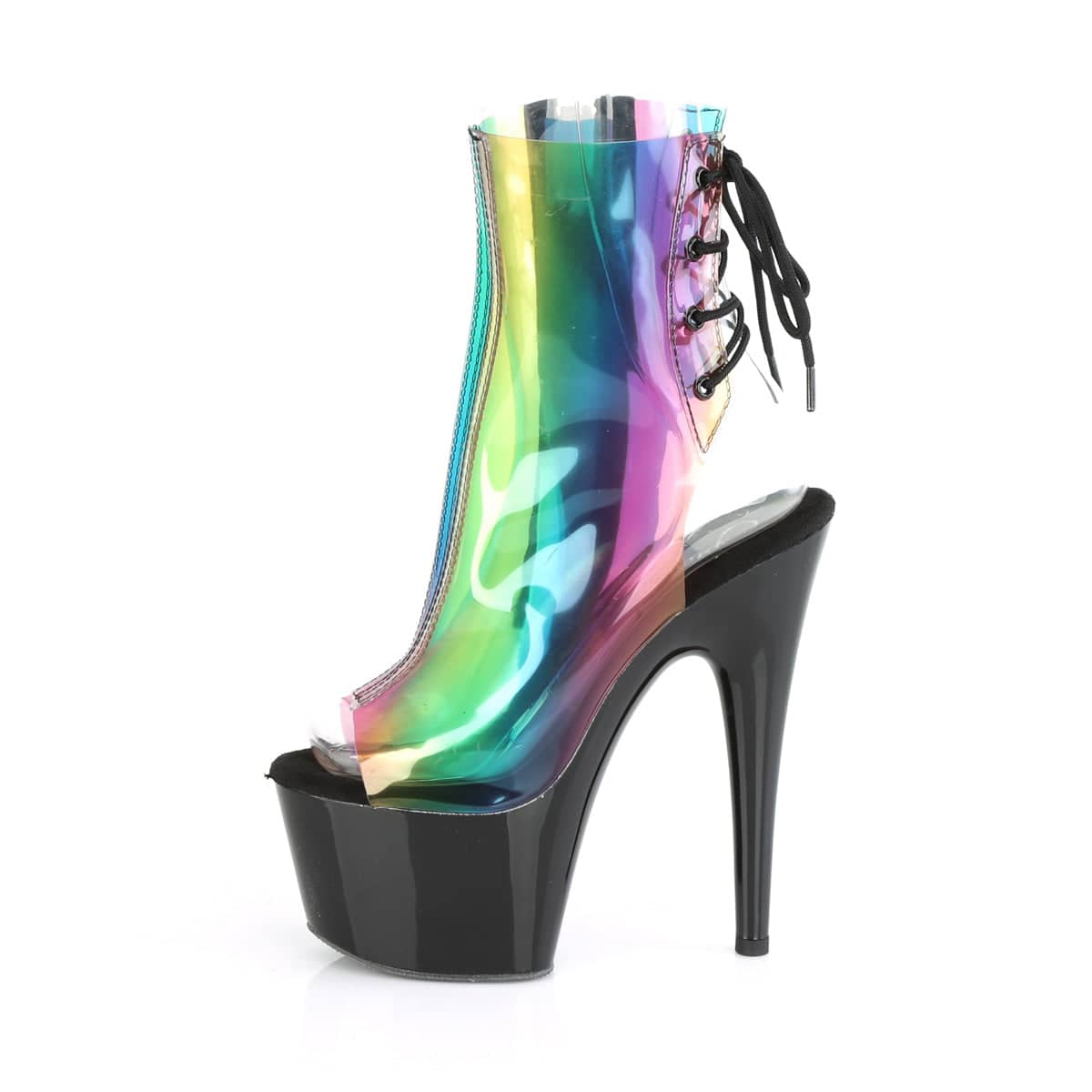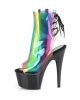7″ (178mm) Heel, 2 3/4″ (70mm) Platform Open Toe/Heel Lace-Up Back Ankle Boot Featuring Translucent Rainbow Upper, Inside Zip Closure