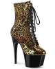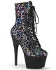 7 (178mm) Heel, 2 3/4 (70mm) Platform Lace-Up Front Ankle Boot w/ Holographic Leopard Print Upper, Inside Zip Closure