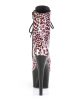These sexy boots are where the wild things are! These are gorgeous seven inch pink tinted leopard print patent platform pole dancing ankle boots. They feature a lace up front, and full inside zip closure.Â