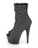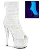 Shimmering rhinestone encrusted ankle boots with a black sparkling platform. These sexy high heels are super cute and a fresh new style from Pleaser. The open toe is stunning and so flattering on both the foot and the leg.