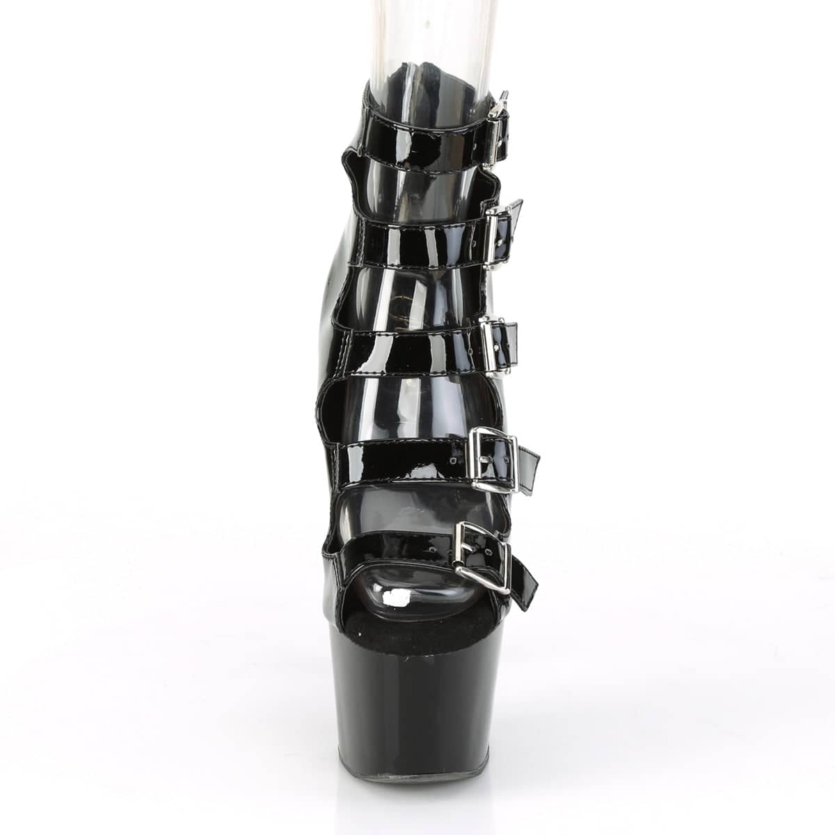 7 (178mm) Heel, 2 3/4 (70mm) Platform Open Toe Open Front Ankle Bootie Featuring Multiple Buckles, Back Zip Closure