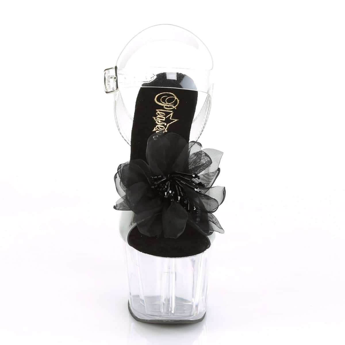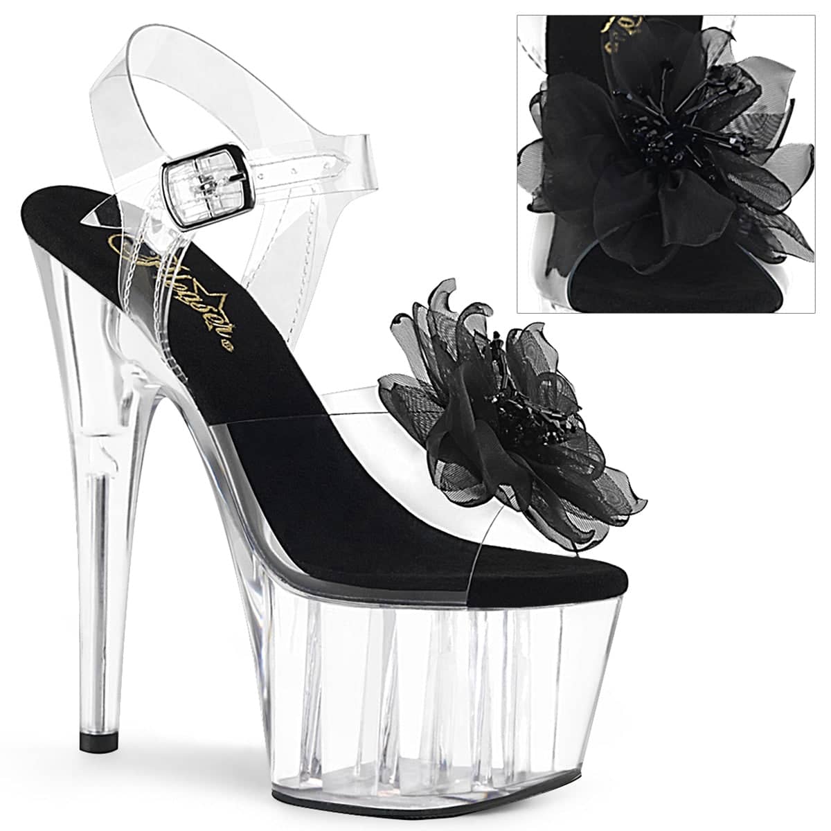 Adore 708BFL Clear & Black Flower Platforms by Pleaser Shoes