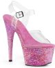 7 (178mm) Heel, 2 3/4 (70mm) Platform Ankle Strap Sandal Featuring Confetti Covering the Entire Platform Bottom