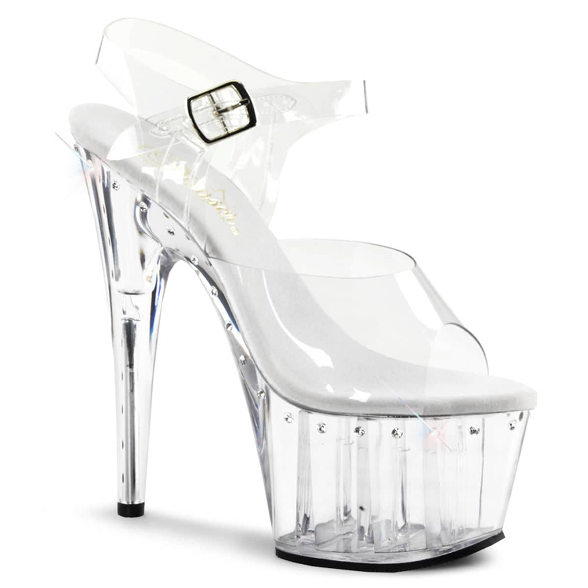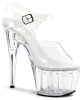 7 (17.8cm) Stiletto Heel, 2 3/4 (7cm) Platform Ankle Strap Sandal Featuring 1 Line Rhinestone on Platform & Heel.