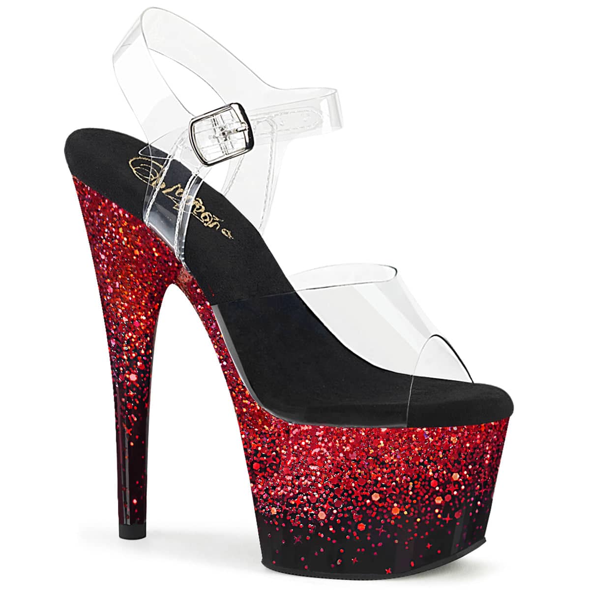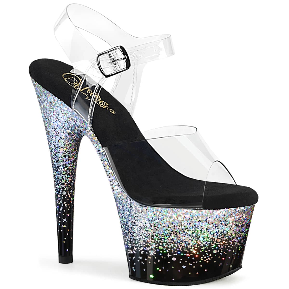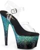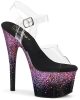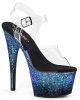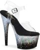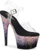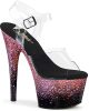 7 (178mm) Heel, 2 3/4 (70mm) Platform Ankle Strap Sandal w/Holographic Gradient Effect on the Platform Bottom