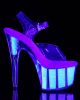 7 (178mm) Heel, 2 3/4 (70mm) Platform Ankle Strap Sandal w/ UV Blacklight Reactive Glitter Inserts in the Platform Bottom