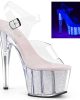 Glow in the dark in these sexy UV high heels by Pleaser. These absolutely stunning seven inch pole dancing platforms are stunning and the platforms are completely neon UV reactive!