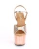 7 (178mm) Heel, 2 3/4 (70mm) Platform Ankle Strap Sandal Featuring Rose Gold Chrome Plated Platform Bottom
