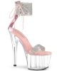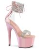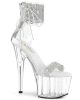 7″ (178mm) Heel, 2 3/4″ (70mm) Platform Close Back Ankle Cuff Sandal w/Side Lacing Featuring Rhinestone Embellished Ankle Cuff & Toe Strap, Back Zip Closure