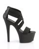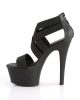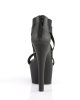 Platform sandals with one elastic strap in toe area and four side straps with front criss-cross design. The back is closed with a black patent strap onto which a tone-to-tone hidden zip is attached. The 6 inch (15 cm) black high heels spice up the look, while the high front platform adds further stability and ensures an effortless wear.Â