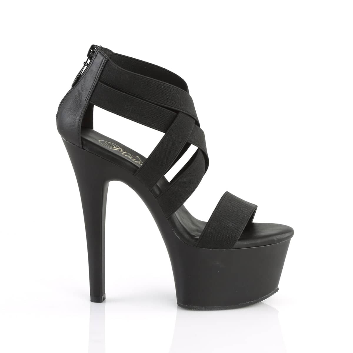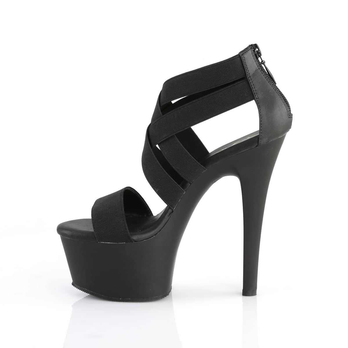 6 (152mm) Heel, 2 1/4 (57mm) Platform Double Criss Cross Close Back Sandal, Back Zip Closure