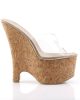 Ultra high wedges with unique cork design on platform, open toe and clear top strap. The sole features a cream textile cushioning for a comfortable feel, while the front high platform makes these slip on wedges easy to wear in any occasion.