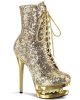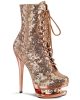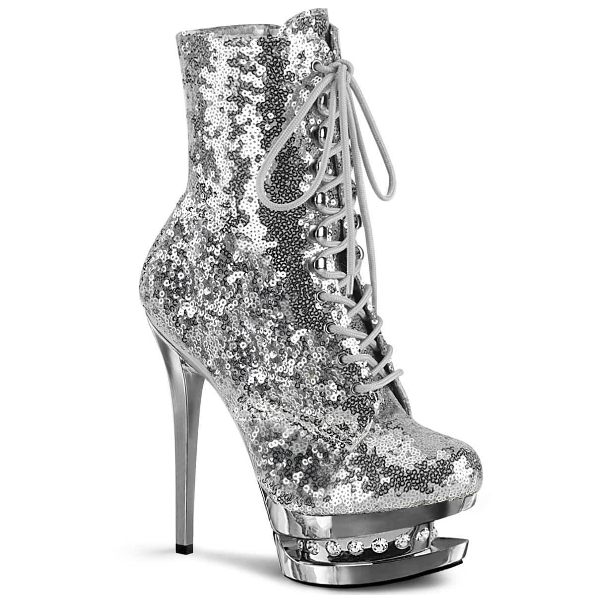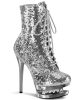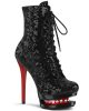 6″ (152mm) Heel, 1 1/2″ (38mm) Platform Two Tone Lace-Up Front Ankle Boot Featuring Rhinestone Accents in Mid Platform, Inside Zip Closure