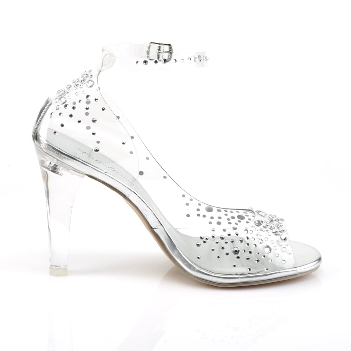 Clearly 430RS Clear Glitter Ankle Strap Heels by Pleaser Shoes