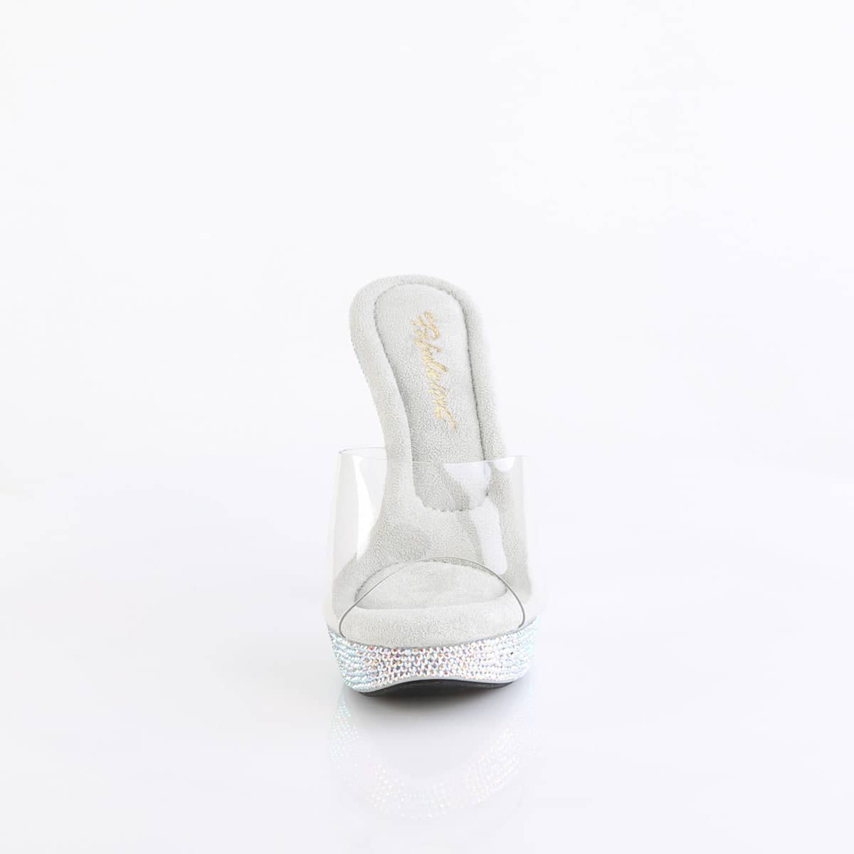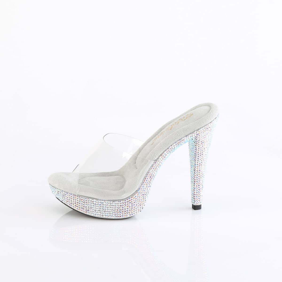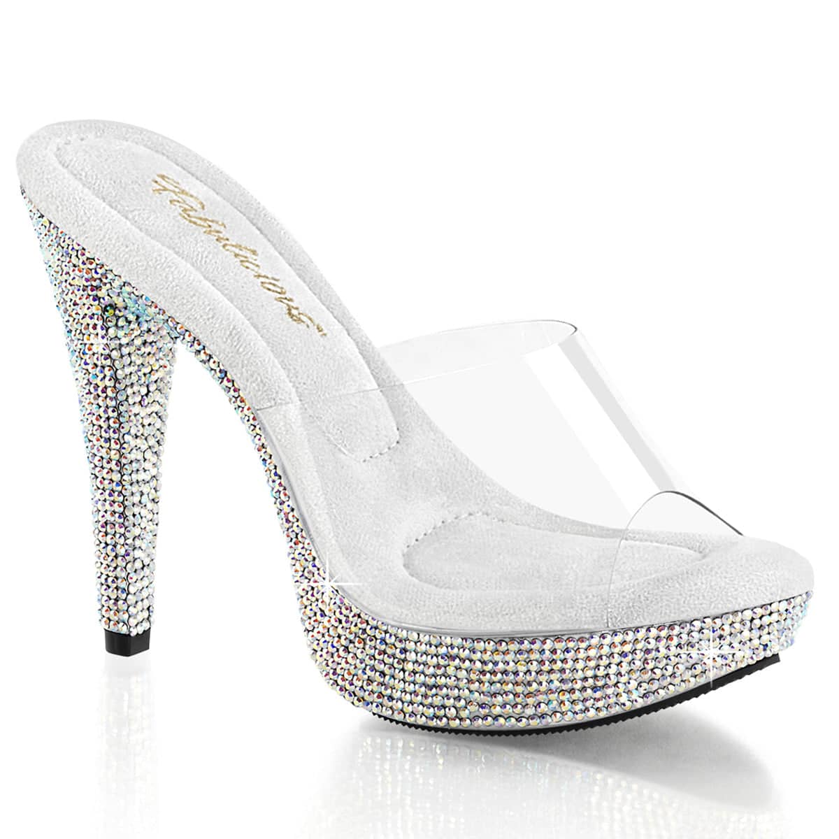 5 (12.7cm) Heel, 1 (2.5cm) Platform Slide Featuring Rhinestones Encrusted on the Entire Platform Bottom