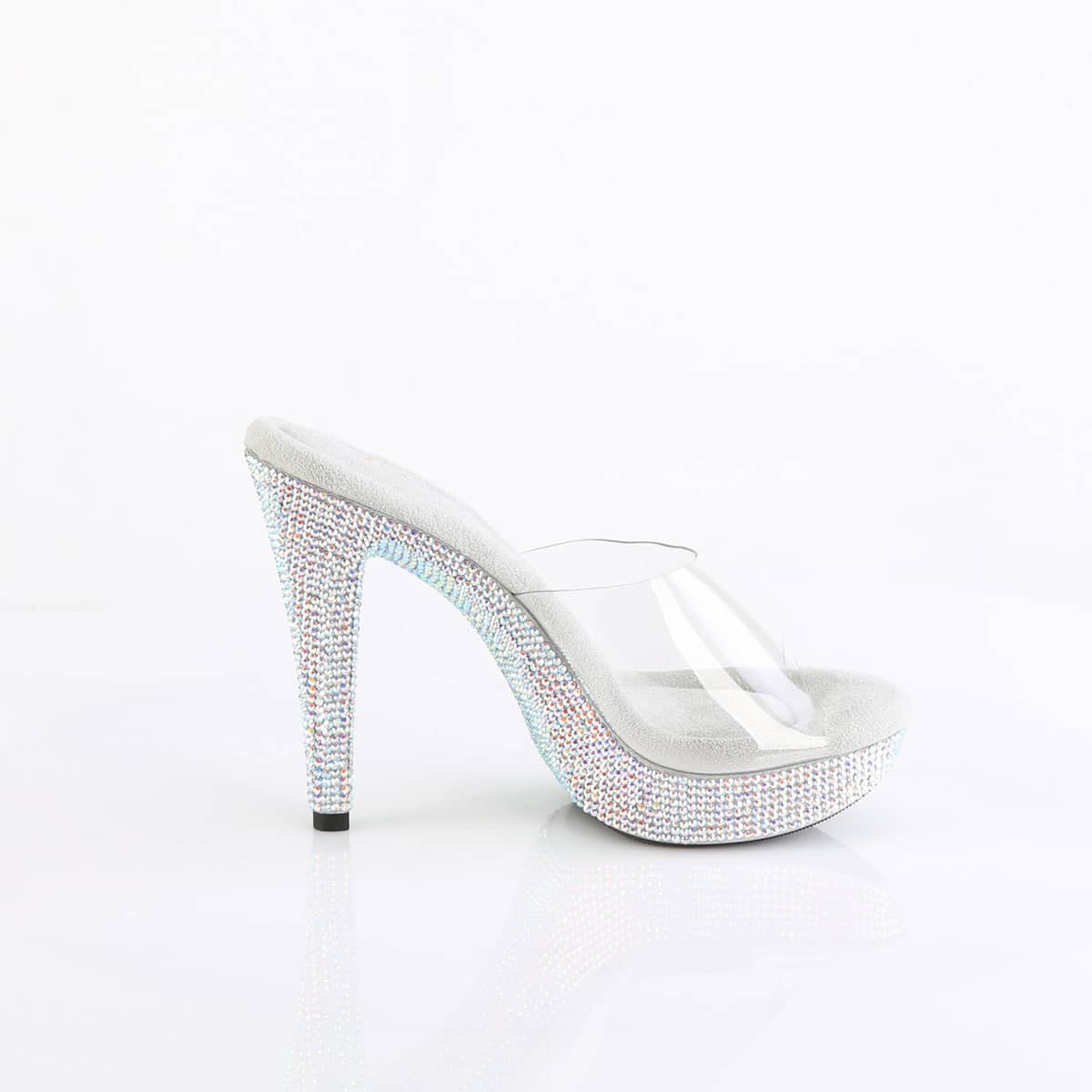 These sexy sparkly mules from Pleaser are the stuff of legends! The insole is padded with a soft tone-to-tone fabric, while the sole features daring 5 inch (12.5 cm) high heels complemented by the front platform. These super sleek beauties are sure to wow the dancefloor!Â