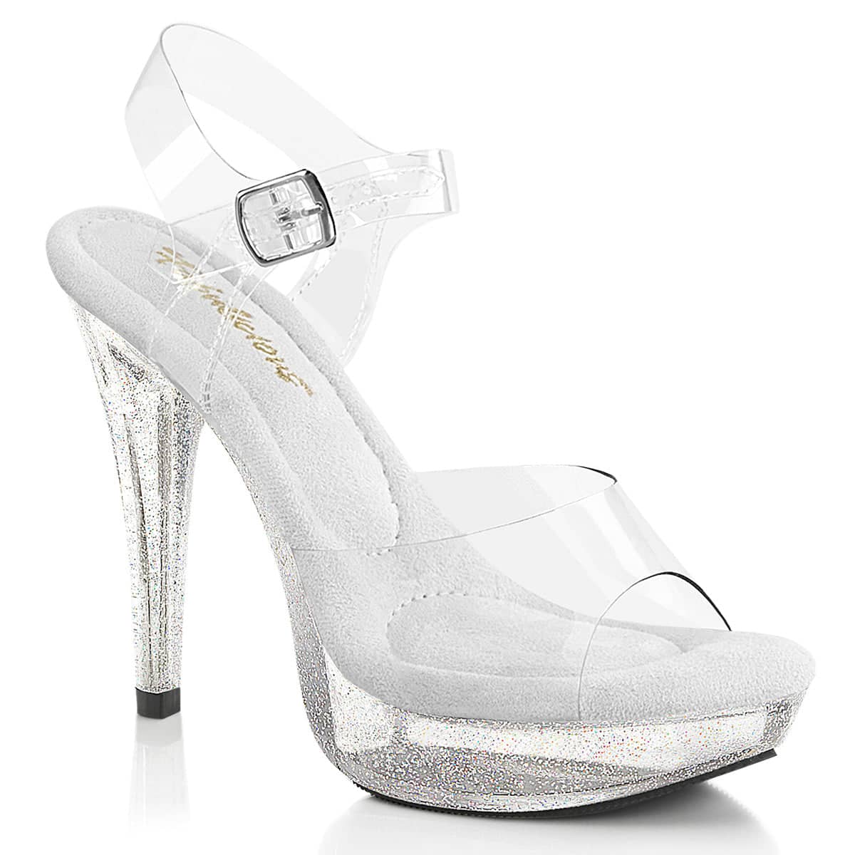 5 (12.7cm) Heel, 1 (2.5cm) Platform Ankle Strap Sandal Featuring Mini Iridescent Glitters on Entire Bottom
