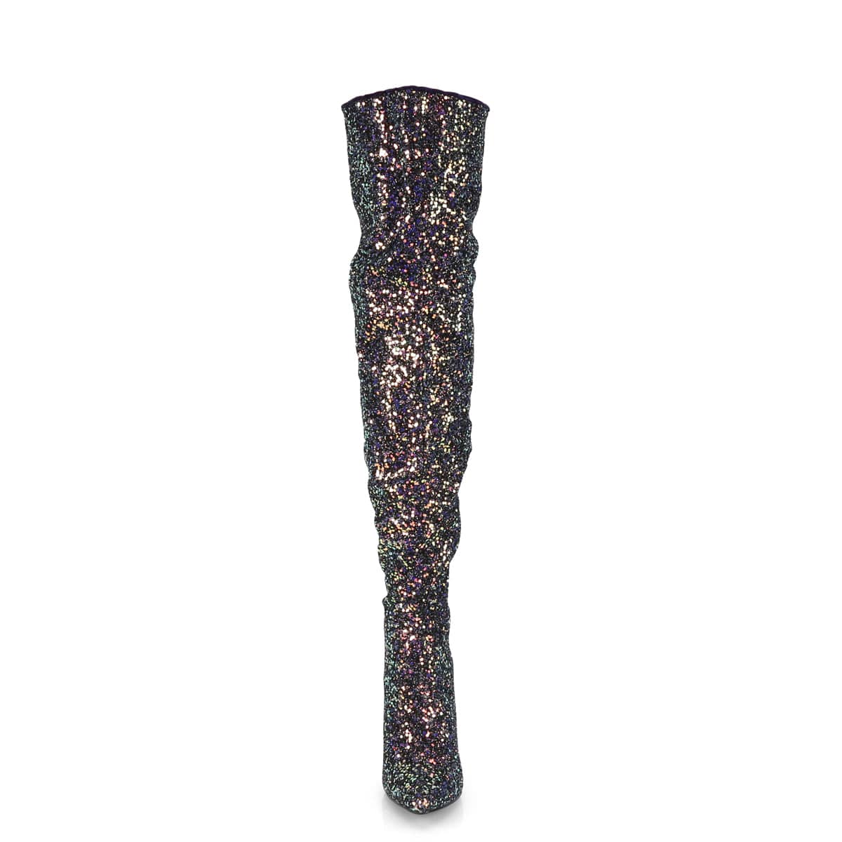Courtly 3015 Black Glitter Thigh High Boots by Pleaser Shoes